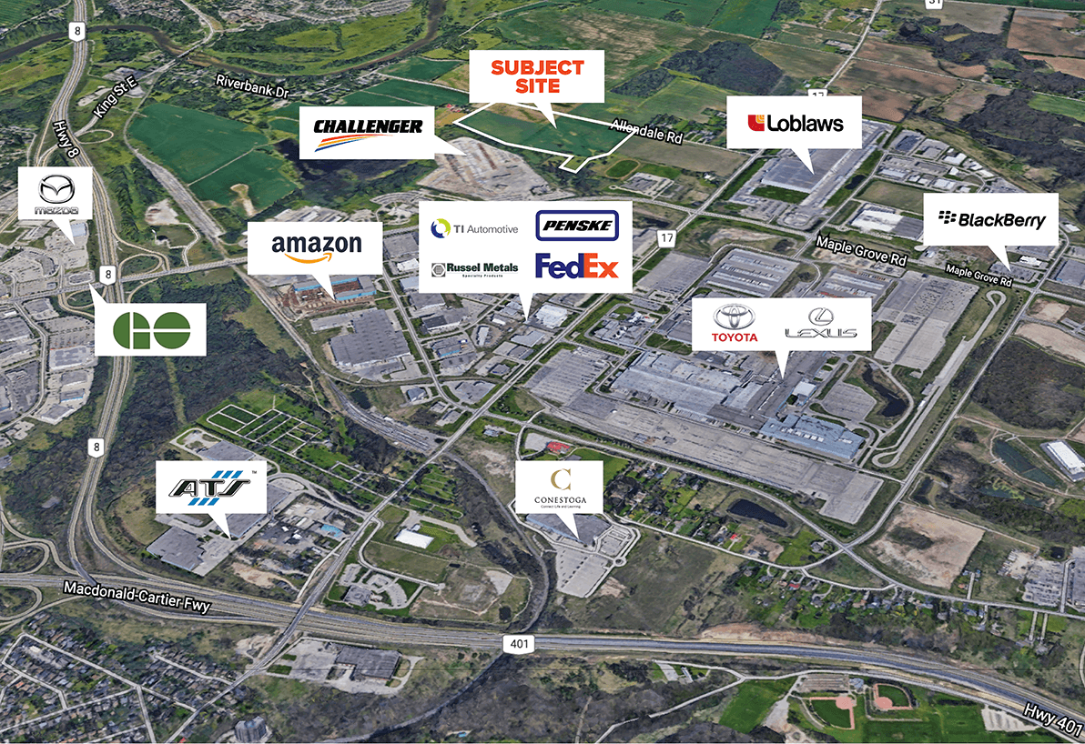 The partnership will co-venture on the 52-acre property situated on Allendale Road between Riverbank Drive and Highway 17 in Cambridge. The property provides quick access to Highway 401, enabling users to access Kitchener (20 mins northwest), Guelph (25 mins northeast), Pearson International Airport (60 mins east), and Downtown Toronto (90 mins east).