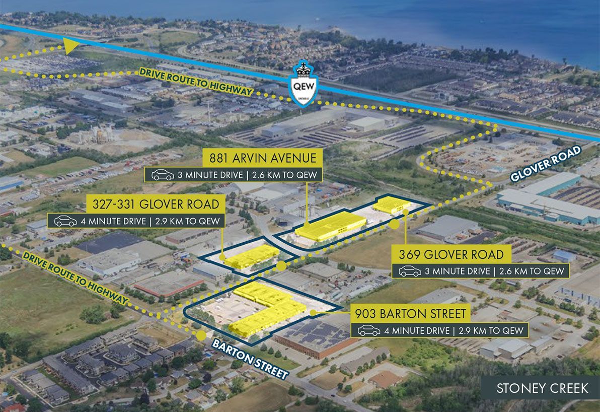 The second acquisition is an existing industrial portfolio consisting of nine buildings with a total leasable area of 473,000 sf and occupancy of nearly 100%. The properties are located in Burlington, Hamilton and Stoney Creek with excellent proximity to the QEW.
