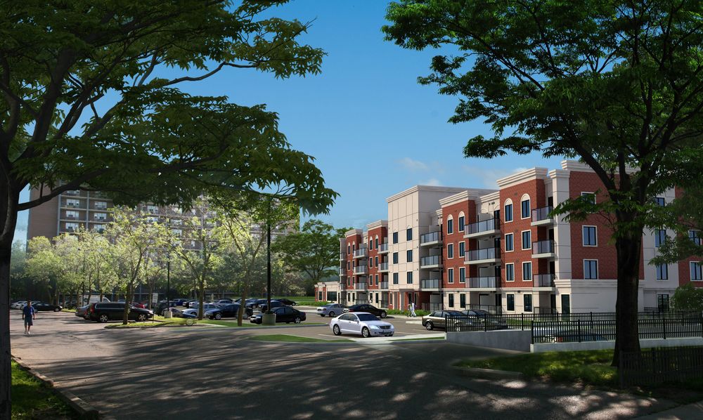 1855 Bloor Street is located on a main bus line in the city of Mississauga, and is an infill-development intended for rental end-users. This four-storey residential rental development has added another 80 apartments to an existing site in Mississauga. Not your typical rental building, this low rise residential development also includes a separate amenity building, complete with fitness and party room facilities.